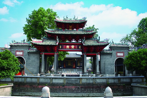 佛山祖廟靈應(yīng)牌坊(前)、萬福臺(后)
