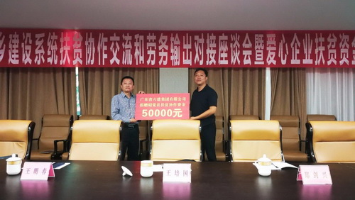 集團(tuán)公司董事長總經(jīng)理魏瓊升(左)代表廣東六建集團(tuán)向四川涼山州昭覺縣捐贈扶貧資金